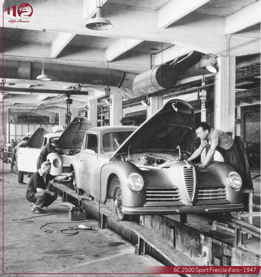 Alfa Romeo 6C 2500 Sport Freccia d'Oro (1947) - Blick in eine der Produktionsstätten, welche gerade mal zwei Jahre nach Ende des zweiten Weltkrieges den Betrieb bereits wieder aufnehmen konnte. Ein wahrer Kraftakt.