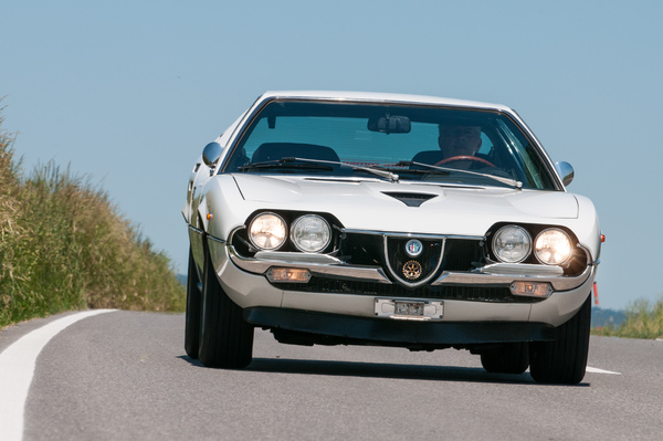 Alfa Romeo Montreal (1973) - die "Wimpern" werden für bessere Lichtausbeute abgesenkt
