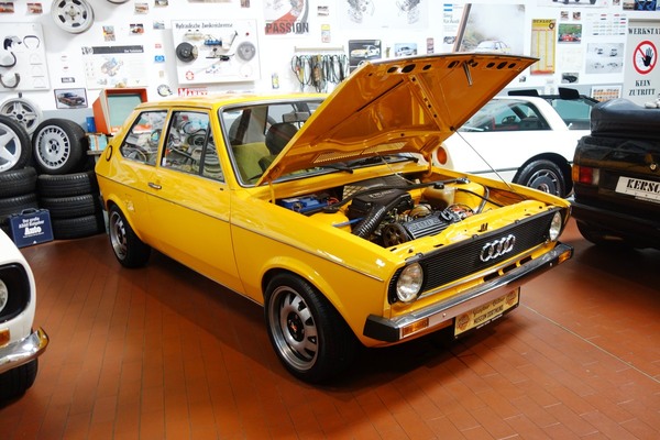 Audi 50 (1975) – leistungsgesteigert und tiefergelegt – im Museum Halle 77 in Dortmund