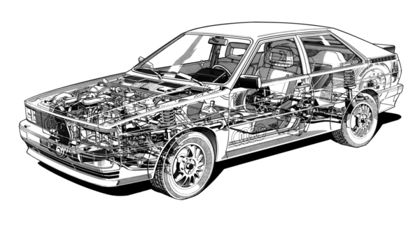 Audi quattro (1980) - Durchsichtszeichnung - Allradtechnik sichtbar gemacht