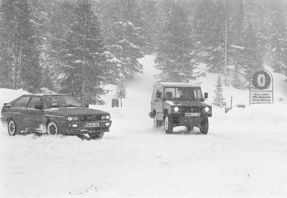 Audi quattro (1980) - Testfahrten zusammen mit VW Iltis in Turrach im Jahr 1980 - viele Teile des quattro-Antriebstrangs hatten ihren Ursprung im Volkswagen-Geländewagen