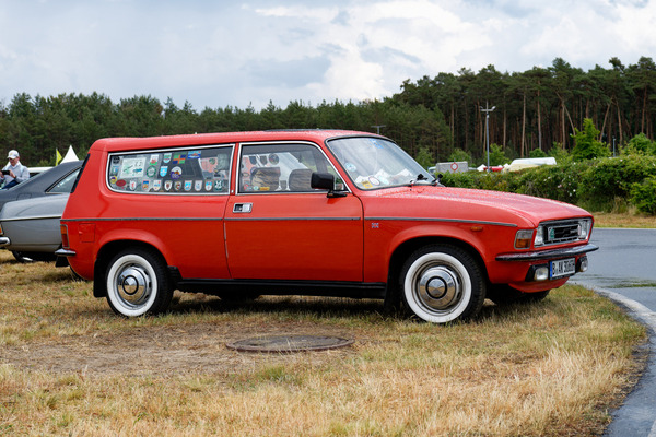 Austin Allegro Estate (1977) – Große Seitenfenster sind praktisch, wenn man Reisen dokumentieren will. Dieser Allegro scheint damit auch der legendären Unzuverlässigkeit spotten zu wollen – Oldtimer-Show Berlin 2024