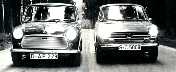 Austin Mini kontra Honda N 360 im Jahr 1968 - zwei Fronttiebler im Zweikampf