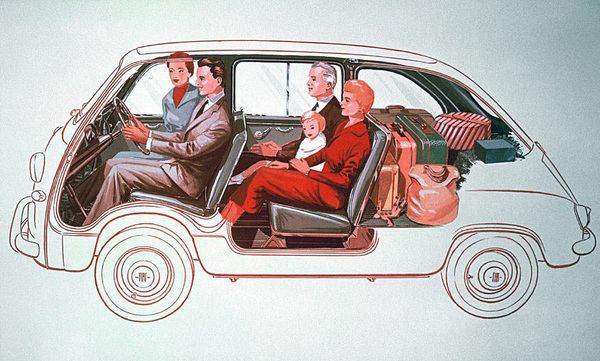 Fiat 600 Multipla (1956) - viel Platz für Gepäck, wenn die dritte Sitzreihe leer bleibt