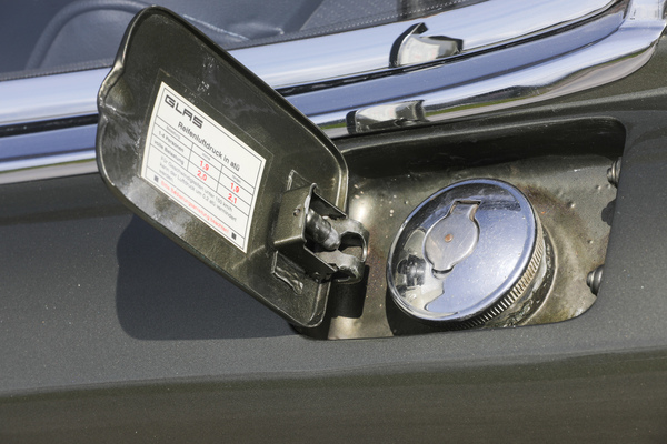 Glas 3000 V8 Coupé (1968) - Tankeinlass mit Reifendruck-Hinweisen