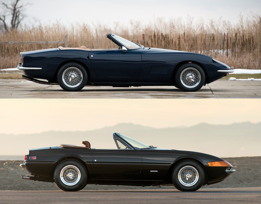 Intermeccanica Italia Spyder (1968) im Vergleich mit dem Ferrari 365 GTB/4 Spyder (1972) - gleicher Radstand und ähnliche Proportionen - Wertdifferenz 1:18