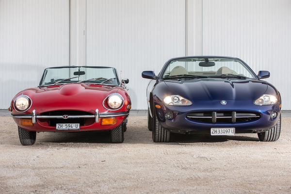 Jaguar E-Type 4.2 Series 2 Cabrio (1970) und Jaguar XK8 Convertible (2000) - im Vergleich zum Vorgänger im Geiste ist der XK8 deutlich gewachsen