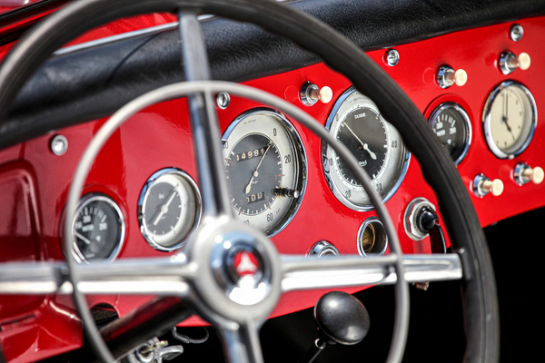 Mercedes-Benz 150 Sportroadster (1935) – Tacho mit Schaltmarkierungen und Tageskilometerzähler
