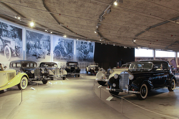 Mercedes-Benz 170 S (1953) - rechts, bereits als Nachkriegsversion - Sonderschau "Mercedes-Benz" im Pantheon Basel 2020/2021