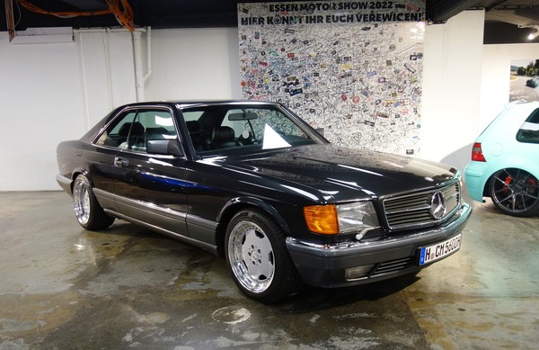 Mercedes-Benz 560 SEC (1986) – vor einer Autogrammsammlung von der letzten Essen Motor Show – im Museum PACE in Dortmund