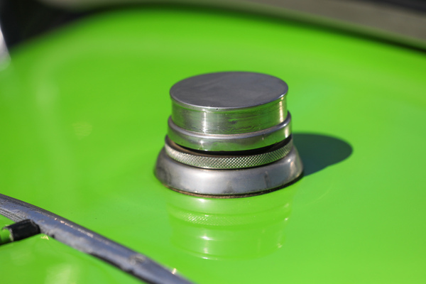 Opel 4 PS "Laubfrosch" (1924) – Benzinfüllstutzen vor der Windschutzscheibe. Der Tank fasst 26 Liter