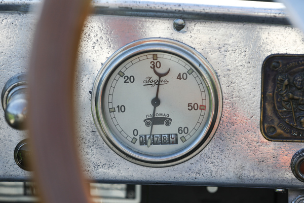 Opel 4 PS "Laubfrosch" (1924) – Falsche Marke, richtige Skala: Opel installierte natürlich keine Hanomag-Tachos. Die rot markierten 50 km/h sind aber als Reisegeschwindigkeit zu halten, 60 km/h maximal drin