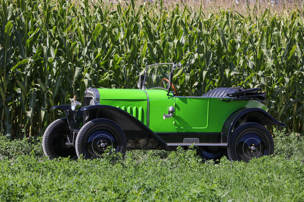 Opel 4 PS "Laubfrosch" (1924) – Tarnfarbe: Obwohl näher am namensgebenden Tier, ist das Grün der Karosserie deutlich heller als der Originalfarbton