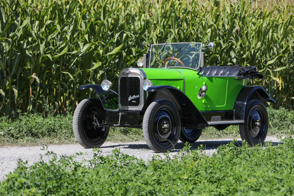Opel 4 PS "Laubfrosch" (1924) – Tarnfarbe: Obwohl näher am namensgebenden Tier, ist das Grün der Karosserie deutlich heller als der Originalfarbton