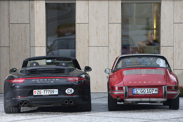 Porsche 911 Targa (1966) - richtig massig erscheint einem der Hintern eines modernen Porsche, wenn man den Ur-911er daneben stellt