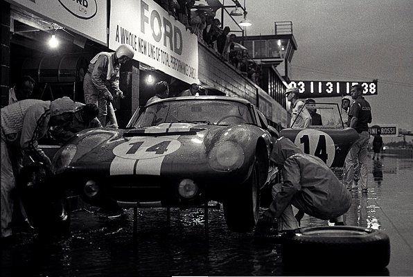 Shelby Cobra Daytona Coupe (1965) - Die Shelby Cobra #14 mit Bob Johnson und Tom Payne beim Boxenstopp im Regen (12 Stunden von Sebring 1965)