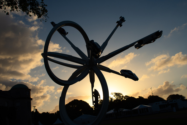 Strahlkraft: Während die Sonne untergeht schwärmen die Porsche weiter in alle Richtungen aus – Goodwood Festival of Speed 2023