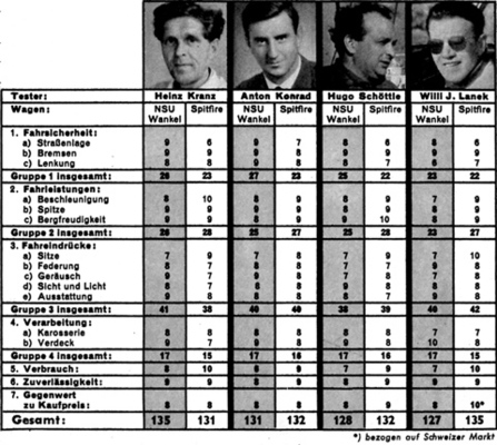 Tabelle-Schlussergebnis - NSU Wankel Spider kontra Triumph Spitfire MK II im hobby Super-Test
