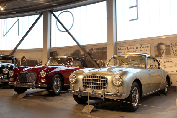 Talbot-Lago Grand Sport Graber von 1953 (links) und Alvis TC21 Graber von1953 - in der Ausstellung "Die Schweizer Carrossiers" im Panthon Basel