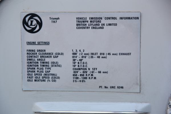 Triumph TR 7 (1980) - praktische Service-Informationen im Motorraum