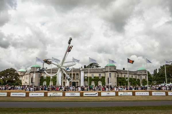 Voller Vorgarten vor Goodwood House trotz bedrohlich aussehendem Himmel – Goodwood Festival of Speed 2023