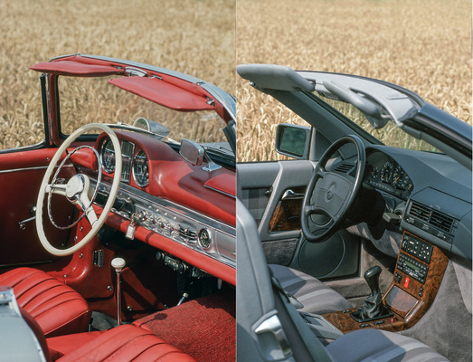Zwei Cockpits mit fast vier Jahrzehnten Abstand - Mercedes-Benz 300 SL Roadster (W 198) und Mercedes-Benz 300 SL-24 (R 129)