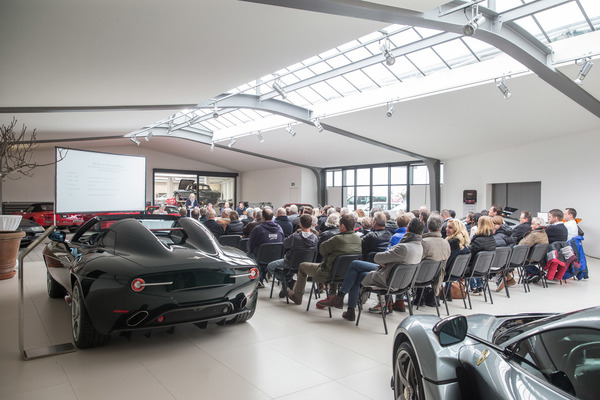 Das über 90 Mitglieder starke Swiss Historic Racing Team, unter der Leitung von Kuno Schär, hielt am 18. Januar 2020 seine Jahres-Versammlung in den “heiligen Hallen” der Niki Hasler AG ab, notabene mit rund fünfzigprozentiger Anwesenheitsquote. Nach den üblichen Traktanden gab es einen spannenden Rundgang durch die Räumlichkeiten der “Garage”, wo doch tatsächlich der weltweit einzige Ferrari steht, der seit seiner Geburt die Herkunft leugnen muss. Nicht ein einziges springendes Pferd, oder auch "Ferrari"-Schriftzug zeigen auf, aus welcher Fabrik das Fahrzeug kommt. Ein Unternehmer aus den frühen Sechzigerjahren entschied sich damals für einen 250 GT Lusso, wollte diesen aber seinem Umfeld nicht unbedingt als Ferrari unter die Nase binden. Noch heute fehlen die Marken-Insignien aussen und innen.