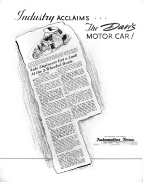 "Vor über vier Jahren kam Gary Davis die Idee des Zukunfts-Autos, das hier beschrieben wird. Er fuhr mit einem neuen, 10'000 Dollar teuren spezialkarossierten Wagen, den er für einen Filmstar entworfen hatte und gerade zu ihrem Anwesen in Beverly Hills überführte. Kaum vernehmlich vor sich hin schnurrend näherte sich der grosse Wagen einer Verkehrsampel auf dem Wilshire Boulevard. Während die Fussgänger den glänzenden Schlitten bewunderten, überfuhr Davis mit einem Glitzern in den Augen gedankenverloren das rote Haltesignal. Er hatte eine Idee! Warum sollte er kein wirklich gutes günstiges Auto bauen? Warum kein wirklich ‘massentaugliches’ Automobil? Er hatte bereits hunderte teurer Serienwagen an Philadelphias Obere Zehntausend verkauft; bereits jede Menge edler Spezialkarossen für Stars, Ölmillionäre und andere wohlhabende Kalifornier entworfen. Nun würde er ein gänzlich neues Auto für ‘Mr. und Mrs. Amerika’ erschaffen."