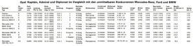 Im Heimatland von Daimler und Benz haben 'Amis' jeglicher Couleur nur geringe Chancen. Diese Wahrheit bekam Opel seit Jahren im Verkauf der großen Drei - Kapitän, Admiral und Diplomat - zu spüren, sie scheiterten ganz einfach an den Autos, die die Nachfahren von Daimler und Benz unter dem 'guten Stern auf allen Straßen' prestigebesessenen Käufern anbieten. Man hat nichts gegen Opel hierzulande, das beweist die Rangfolge in der Verkaufsstatistik, nach der Opel mit dem Kadett wie dem Commodore so hoch in der Käufer Gunst steht, daß Rüsselsheim in der Gesamtproduktion seit vielen Jahren den zweiten Platz hinter dem Giganten aus Wolfsburg behauptet. Man hat auch nichts gegen die Sechszylinder; so wurde das Rekord-Geschäft neu belebt, als man den Rekord mit dem Sechszylinder in der Version des Commodore herausbrachte. Damit ist auch bewiesen, daß man generell nichts gegen höhere Marinedienstgrade hat.