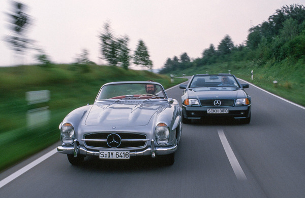 Zwischen dem ersten offenen 300 SL und dem letzten liegen fast 40 Jahre und mehrere Baureihen. Technisch und auch konzeptionell liegen die Baureihen W 198 und R 129 weit auseinander. Aber beide offerierten vergnügliches Offenfahren und überlegene Fahrleistungen, also dasselbe, allerdings heutzutage zu einem Preis, der um den Faktor 50 auseinander liegt. Dieser Bericht vergleicht den ersten und letzten Träger des Namens 300 SL und zeigt beide auf historischen und zeitgenössischen Bildern.