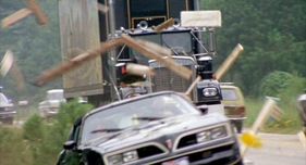 Der Film “Smokey and the Bandit” (Titel der deutschsprachigen Fassung: “Ein ausgekochtes Schlitzohr”) war ein Kassenschlager und machte ein Auto weltberühmt, dass eigentlich seine besten Zeiten schon lange hinter sich hatte, den Pontiac Firebird Trans Am. Burt Reynolds hiess der damals sehr beliebte Schauspieler, der im Film den Lastwagenfahrer “Bandit” mimte und mit seinem schwarzen Pontiac Firebird für eine Wette die Polizei von einem bierschmuggelnden Sattelschlepper (Kenworth W900A) ablenkte. Heisse Verfolgungsjagden, eine mitfahrende Hochzeitsbraut (Sally Field) und deftige Dialoge kennzeichneten den 96-minütigen Streifen, der für gerade einmal 4,3 Millionen USD (inklusive Gagen) abgedreht wurde und 1977 fast das Achtzigfache einspielte.