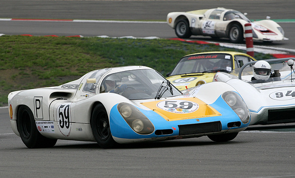 Einmalig in der deutschsprachigen Geografie dürften die beiden Läufe der Jaguar-E-Type-Challenge gewesen sein, Rennen ausschliesslich für den Sportwagen von Jaguar, der dieses Jahr den fünfzigsten Geburtstag feiert. Rund 30 E-Types kämpften auf der Piste um Pokale, darunter Cabrios, Coupés, Low Drag Coupés aller Farben und Jahrgänge zwischen 1961 und 1965. Ein veritabler Markenpokal also mit wunderschönen Autos und atemberaubender Klangkulisse. Gewonnen wurden beide Läufe durch den Briten Garry Pearson, während der zweite Platz beim ersten Rennen an Martin Melling/Jason Minshaw, respektive an Marcus von Oeynhausen ging.