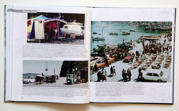 Es sind aber vor allem die Fotos, die den Reiz des mit 176 Seiten kompakten Büchleins ausmachen. Es sind eben keine Werkfotos oder werbetechnisch hochstilisierte Abbildungen, sondern Schnappschüsse von damals, mit der Zielsetzung gemacht, einen Moment einzufrieren. Da ist für jeden etwas dabei, für den Porsche-Fan, der alte 356-er entdeckt, den Opel-Anhänger, der die unterschiedlichsten Modelle aus Rüsselsheim im Urlaubstrimm vorfindet, bis zum Fan längst verschwundener Marken wie Borgward oder Austin.