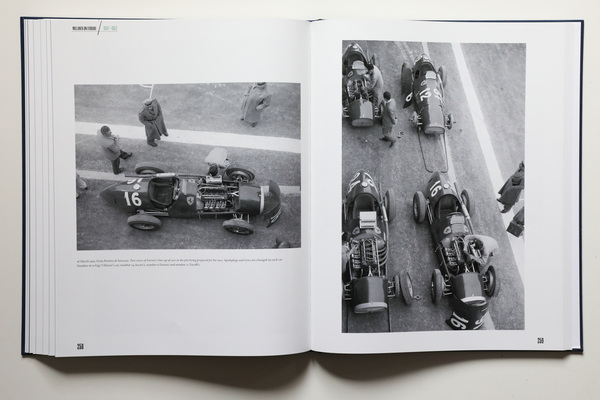 Wir blicken auf die Welt von Enzo Ferrari, auf die frühen Jahre seiner eigenen Firma. Nur gerade fünf Jahre umfasst die Fotosammlung, die auf knapp über 350 Seiten ausgebreitet wird. Die Fotos stammen von Corrado Millanta (1909-1983), einem gelernten Industriedesigner und Ingenieur, der sich die Fotografiekenntnisse autodidaktisch angeeignet hat.