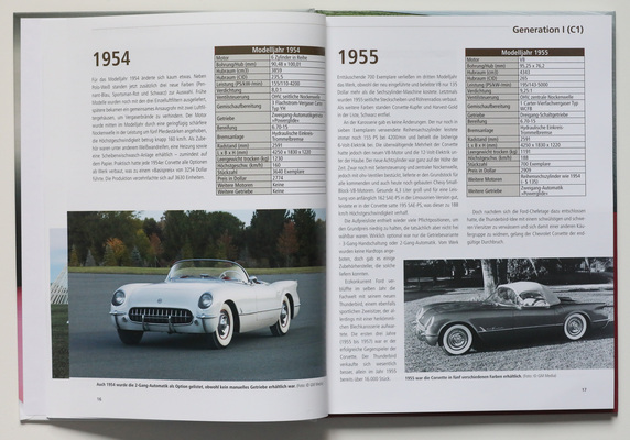 Rein rechnerisch ergeben sich also gute zwei Seiten pro Modelljahr. Allerdings kommen noch die Kapitel über Prototypen und Studien, Rennversionen, Callaway-Derivate sowie eine kurze allgemeine Chevrolet-Geschichte hinzu, sodass sich ein Modelljahr gerne auch 'mal auf eine Seite beschränken muss.