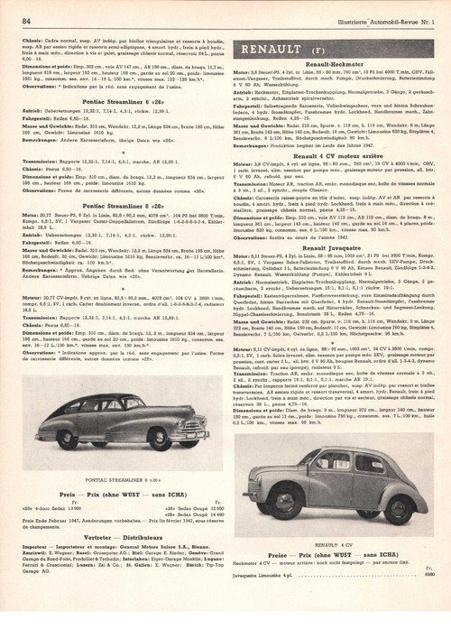 Oelinhalt 3 L, Batteriezündung 6 V 90 Ah, Kerzen Renault, Zündfolge 1-3-4-2,