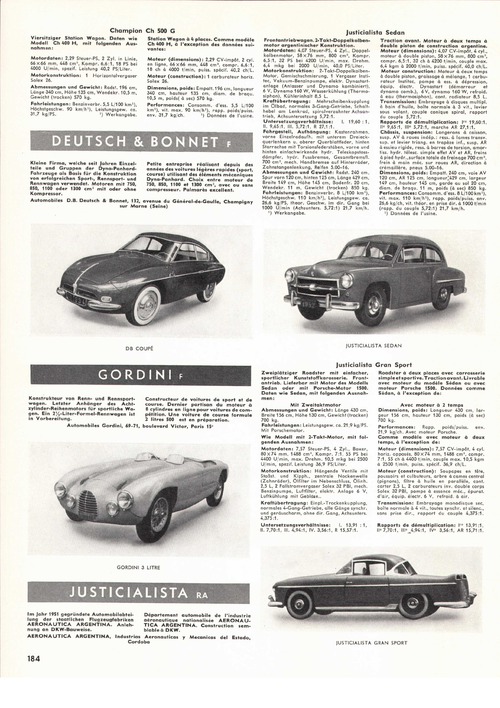 Im Jahr 1951 gegründete Automobilabteilung der staatlichen Flugzeugfabriken AERONAUTICA ARGENTINA. Anlehnung an DKW-Bauweise.