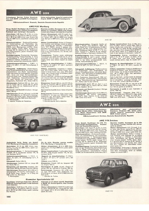 Abkürzung für «Automobilwerk Zwickau». Frühere Marke «IFA». Volkseigener Betrieb. Bisher Konstruktion nach DKW- Vorkriegsbaumuster