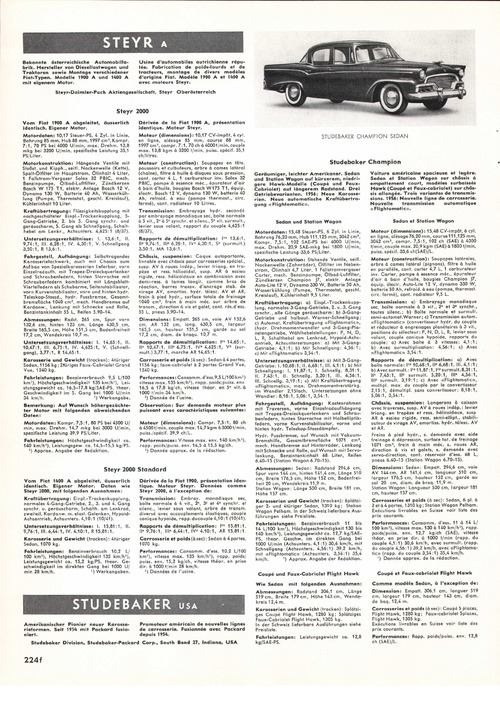 Geräumiger, leichter Amerikaner. Sedan und Station Wagon auf kürzerem, niedrigere Hawk-Modelle (Coupé und Faux- Cabriolet) auf längerem Radstand. Drei Getriebevarianten. 1956: Neue Karosserien. Neue automatische Kraftübertragung «Flightomatic».