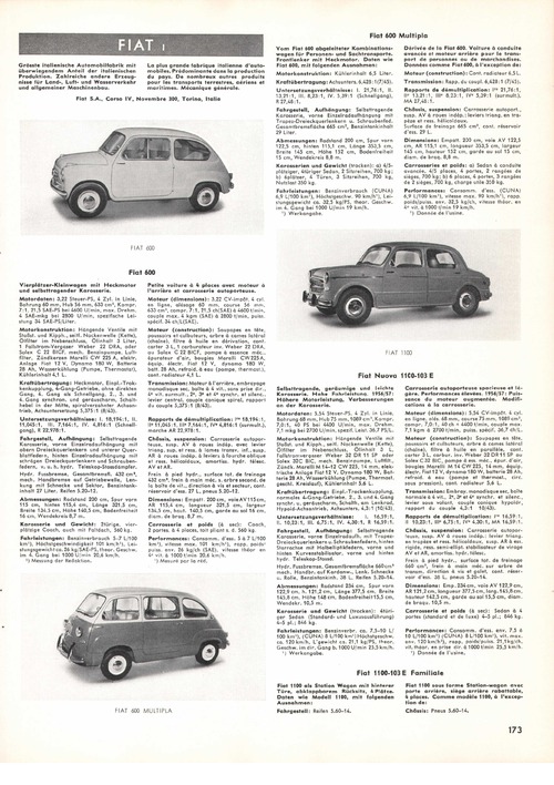 Fiat 1100 als Station Wagon mit hinterer Türe, abklappbarem Rücksitz, U Plätze. Daten ähnlich wie Modell 1100