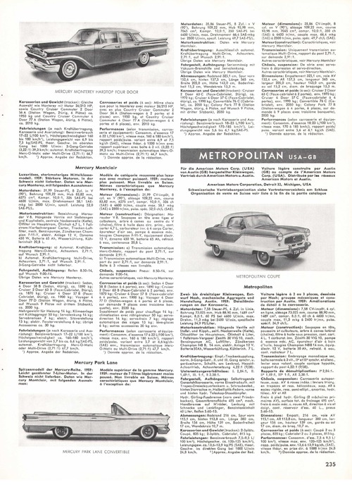 Spitzenmodell der Mercury-Reihe. 1959: Leicht gezähmter 7-Liter-Motor. In der Schweiz nicht lieferbar. Daten wie Mercury Montclair, mit folgenden Ausnahmen:
