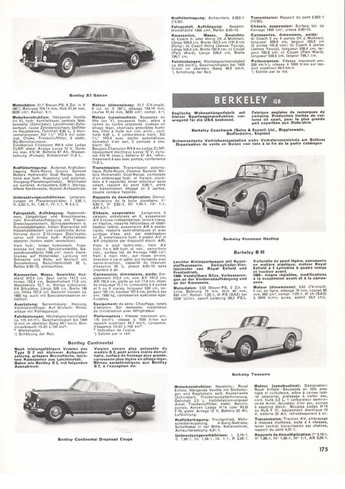 Noch leistungsfähigere Version des Typs S 2 mit kleinerer Achsuntersetzung, grössere Bremsfläche, leichtere Karosserien aus Leichtmetall. Daten wie Bentley S 2, mit folgenden Ausnahmen:
