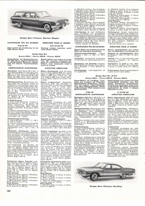 Dodge Dart PioneAUSFÜHRUNG FÜR DIE SCHWEIZ18,75/145 HPDaten gleich wie Ausführung für die USA (Power Pack).