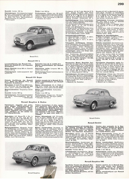 Sportliche Version des Renault Dauphine mit gesteigerter Motorleistung. Vorgesehen zur Homologierung als «normaler Serientourenwagen». Debüt Rallye Monte Carlo. Daten wie Renault Dauphine, mit folgenden Ausnahmen:
