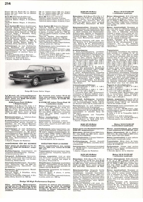 Höher gezüchtete Motorvarianten, lieferbar bei den Modellreihen Dodge 330, 440, Polara und Polara 500. In der Schweiz nur auf besondere Bestellung erhältlich.