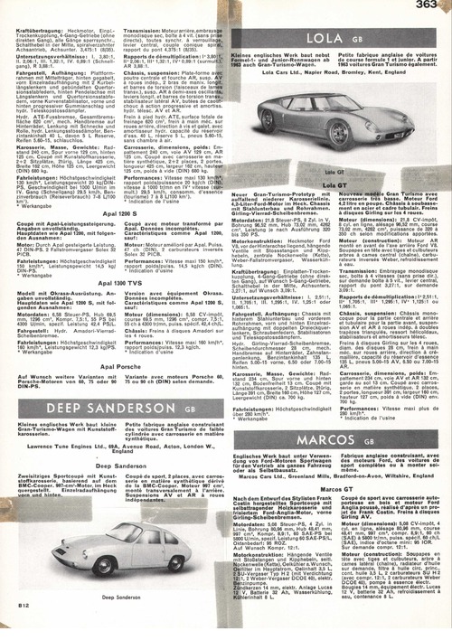 Englisches Werk baut unter Verwen- düng von Ford-Motoren Sportwagen für den Vertrieb als ganzes Fahrze oder als Selbstbausatz.Marcos Cars Ltd., Greenland Mills,Marcos GT