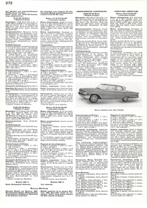 Oberstes Modell von Mercury. 1963: Neue Karosserielinien. Wahl zwischen verschiedenen V8-Motoren. Wird nicht in die Schweiz importiert.