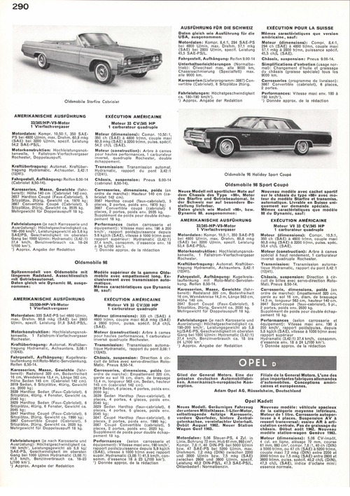 Spitzenmodell von Oldsmobile mit längerem Radstand. Ausschliesslich mit Getriebeautomat. Daten gleich wie Dynamic 88, ausgenommen: