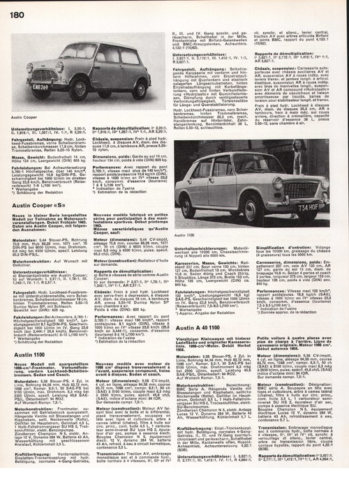 Neues in kleiner Serie hergestelltes Modell zur Teilnahme an Motorsportveranstaltungen. Debüt Frühjahr 1963. Daten wie Austin Cooper, mit folgenden Ausnahmen: