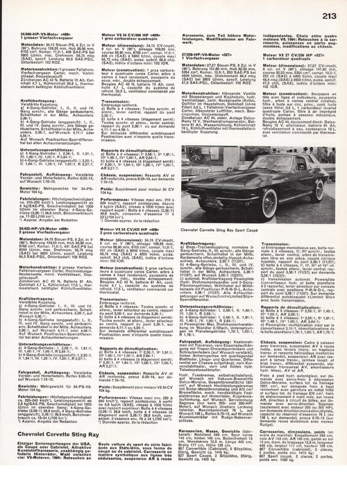 Einziger Seriensportwagen der USA, als Coupé oder Cabriolet. Attraktive Kunststoffkarosserie, unabhängig gefederte Hinterräder. Wahl zwischen vier V8-Motoren. 1964: Retouchen an Karosserie, zum Teil höhere Motorleistungen, Modifikationen am Fahrwerk.